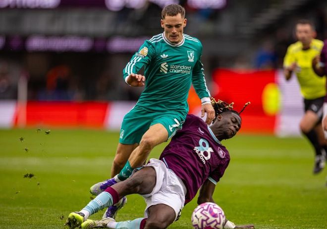本场比赛对阵法兰克福,是利物浦在悬崖边上的殊死一搏,他们已经没有任何理由继续输球,因此主帅斯洛特也排出了最强阵容,其中来自德甲的弗林蓬、维尔茨以及本来就是法兰克福出品的新援埃基蒂克都首发上阵。