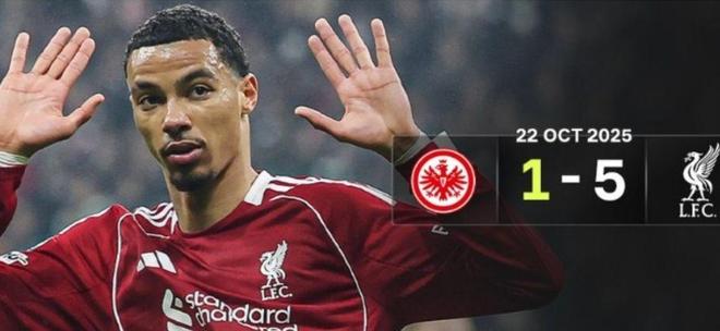 半场结束前,利物浦利用角球再进一球。上半场结束,法兰克福1-3落后,看台上一片寂静。下半场,利物浦再进2球。最终,法兰克福1-5惨败。全场比赛,法兰克福的控球率只有35%,但他们一直在努力进攻。