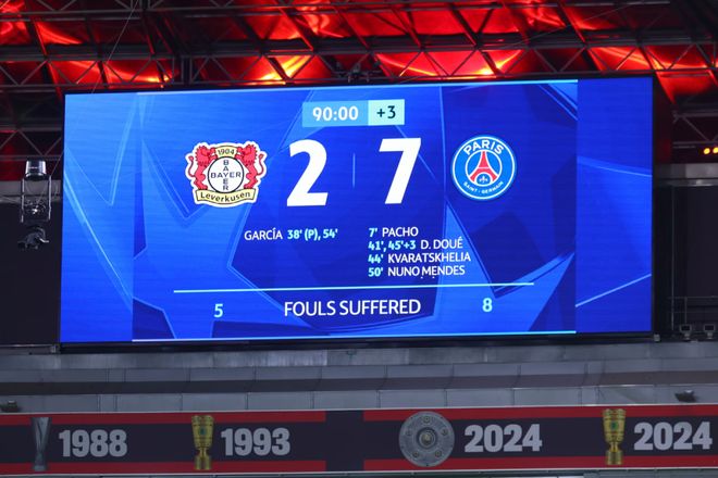 德西雷·杜埃和奥斯曼·登贝莱终于回归了,巴黎圣日耳曼立即与众不同。即使仍然未能全主力首发,而且在比赛中被罚下一人,但在这场大部分时间10打10的比赛中,巴黎圣日耳曼再次踢出了统治级别的华丽足球,客场7比2勒沃库森,足以让德国足球界汗颜。